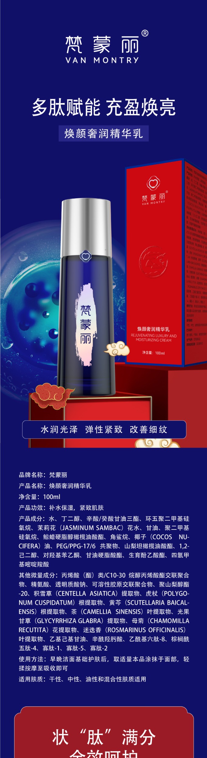 産品功效:補水保濕,緊緻肌膚